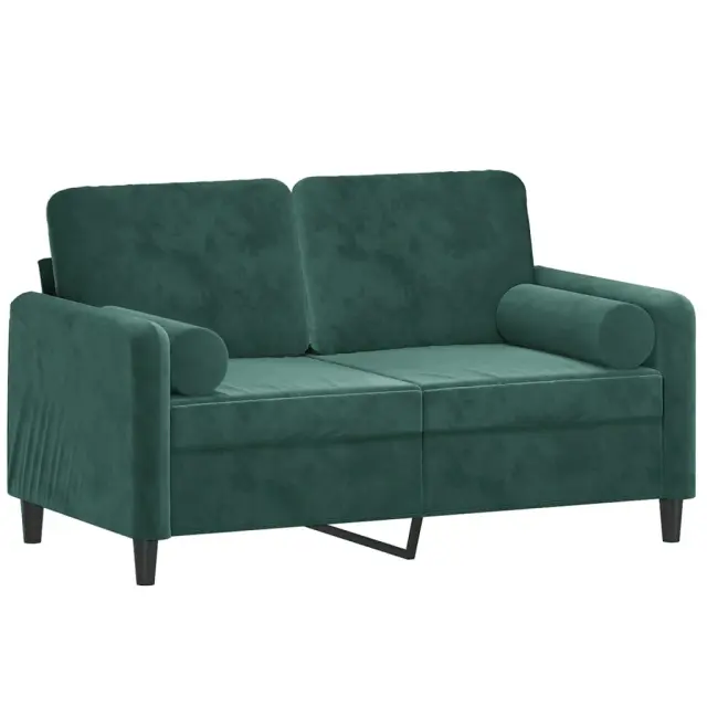 vidaXL Kavč dvosed z okrasnimi blazinami temno zelen 120 cm žamet