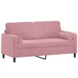vidaXL Kavč dvosed z okrasnimi blazinami roza 140 cm žamet