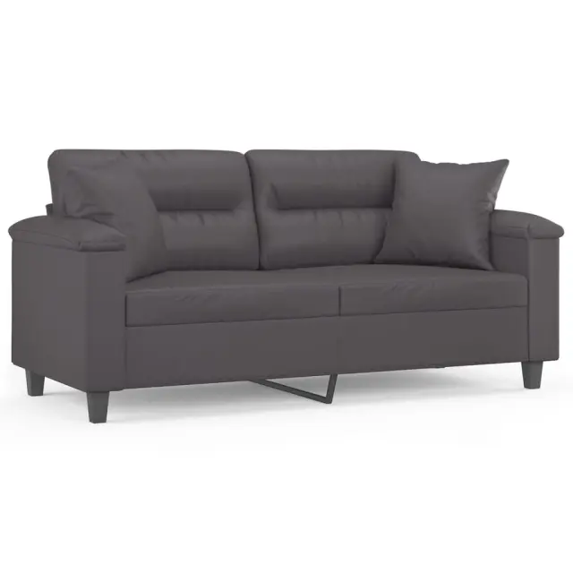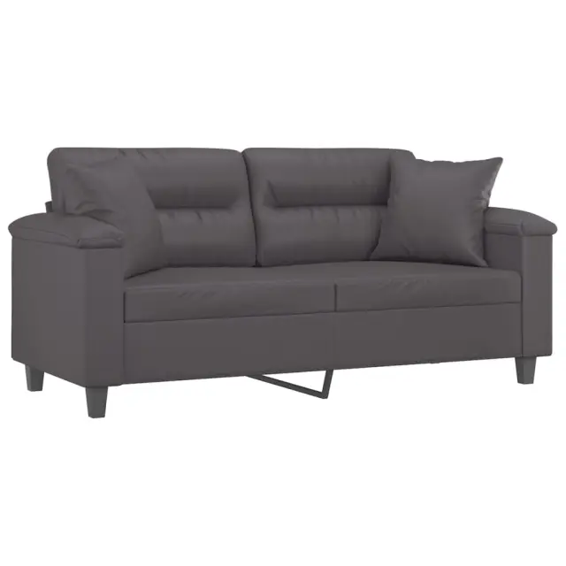 vidaXL Kavč dvosed z okrasnimi blazinami siv 140 cm umetno usnje