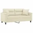 vidaXL Kavč dvosed z okrasnimi blazinami krem 140 cm umetno usnje