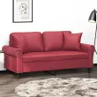 vidaXL Kavč dvosed z okrasnimi blazinami vinsko rdeč 140 cm um. usnje
