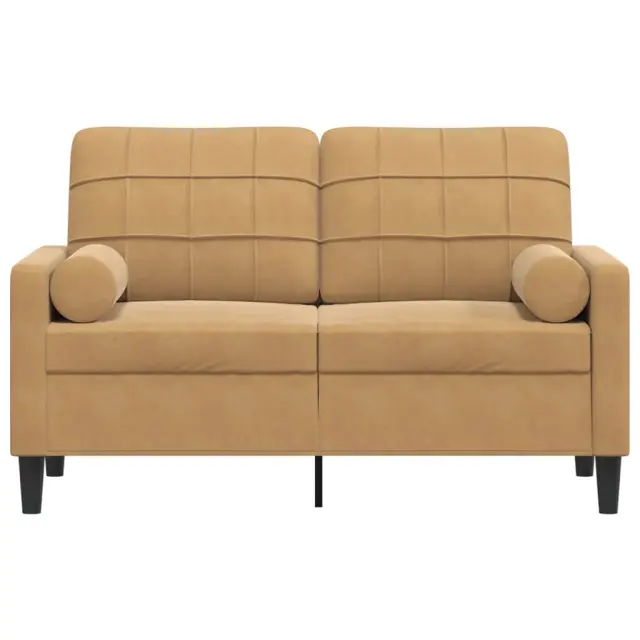 vidaXL Kavč dvosed z okrasnimi blazinami rjav 120 cm žamet