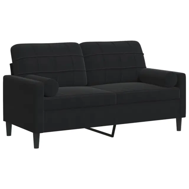 vidaXL Kavč dvosed z okrasnimi blazinami črn 140 cm žamet