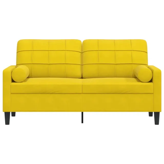 vidaXL Kavč dvosed z okrasnimi blazinami rumen 140 cm žamet