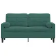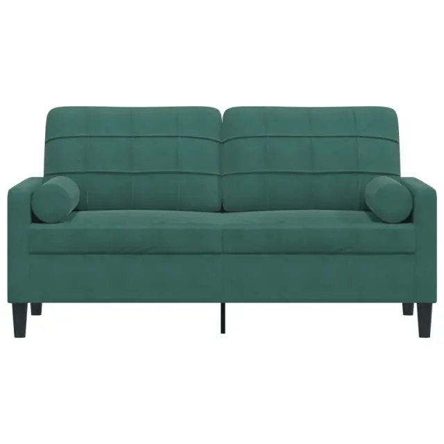 vidaXL Kavč dvosed z okrasnimi blazinami temno zelen 140 cm žamet