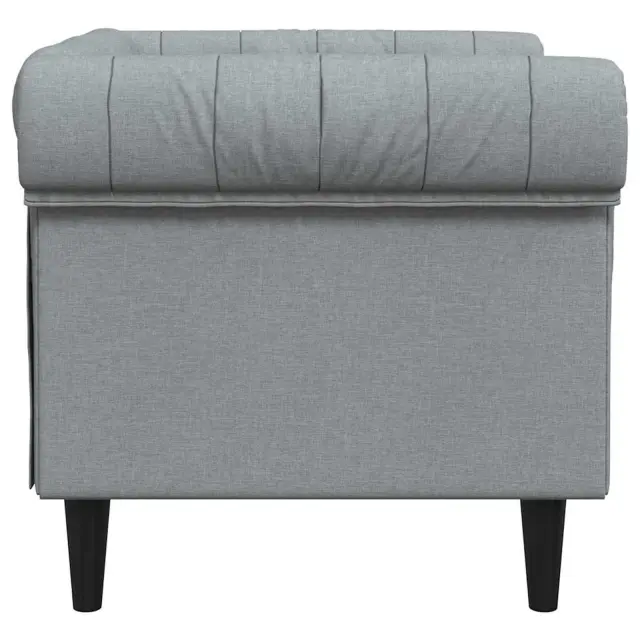 Ta Chesterfield sedežna garnitura predstavlja funkcionalnost in stil z globokim gumbnim oblazinjenjem in zvitimi rokami, ki dodajata kanček sofisticiranosti vsaki dnevni sobi. Je enostavna za uporabo in ponuja čisto obliko, ki se lepo sklada s modernimi prostori, obenem pa je udobno mesto za goste in družinska srečanja. Njena privlačnost in funkcionalnost jo naredijo za nujen kos za vašo dnevno sobo, saj ponuja tako lepo in udobno izkušnjo. Ne glede na to, ali ležerno gledata film, gostite prijatelje ali uživate v tišini ob skodelici čaja, se ta kavč enostavno prilega različnim bivalnim okoljem in polepša videz vašega doma.