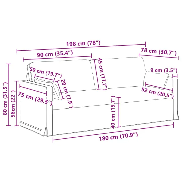 • Širina sedeža: 180 cm