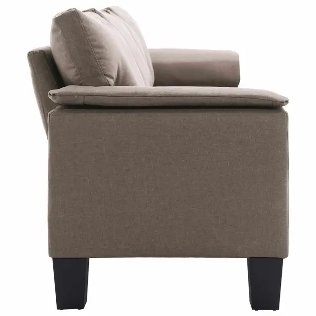 Moderna zofa je savršen spoj stila in funkcionalnosti, enostavno se zlije z vašim prostorom. Narejena iz tkanine, prinaša sofisticiran videz s svojimi čisto oblikovanimi linijami. Ta zofa je res vsestranska, idealna je za sproščanje po dolgem dnevu ali druženje s prijatelji. Njena prisotnost je hkrati subtilna in izrazita, ponuja pa udobno in modno zatočišče za sprostitev in zabavo.