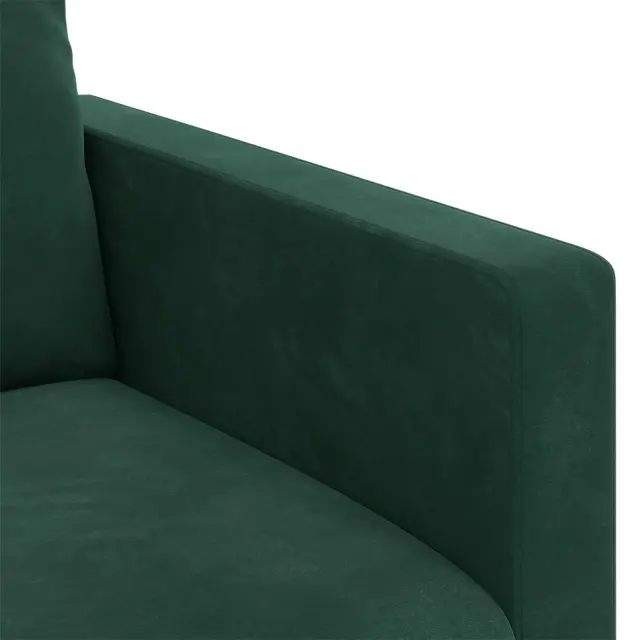 • Materiali: Trdna kovinska konstrukcija je osnova te sedežne garniture, kar zagotavlja stabilnost in dolgotrajno uporabo. Žamet nudi prijeten, mehak občutek, luksuzen in užitčen ob vsakem stiku. Ti materiali skupaj ustvarjajo udoben kos, ki je enostaven za vzdrževanje.