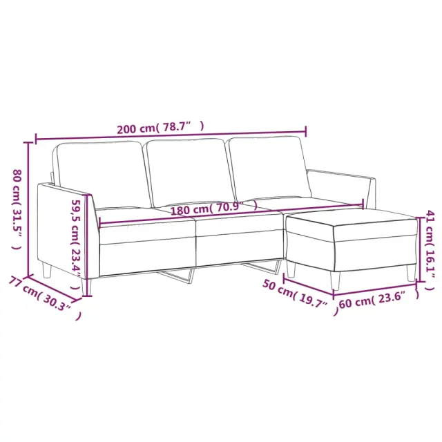 • Celotne dimenzije: 200 x 77 x 80 cm (Š x G x V)