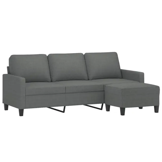 vidaXL Kavč trosed s stolčkom za noge temno siv 180 cm blago