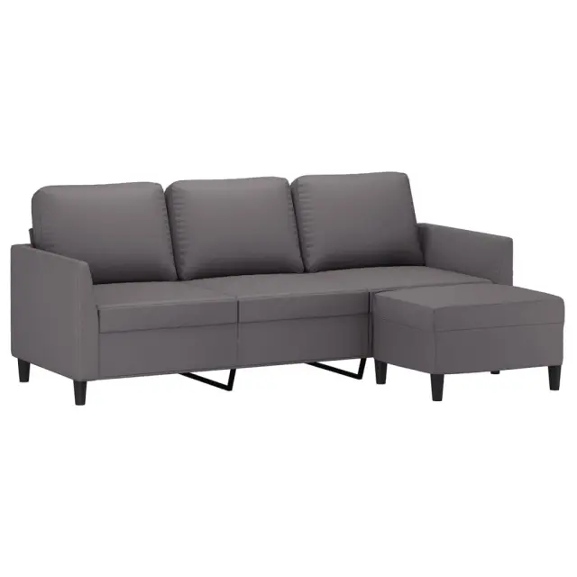 vidaXL Kavč trosed s stolčkom za noge siv 180 cm umetno usnje