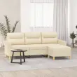 vidaXL Kavč trosed s stolčkom za noge krem 180 cm blago