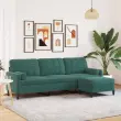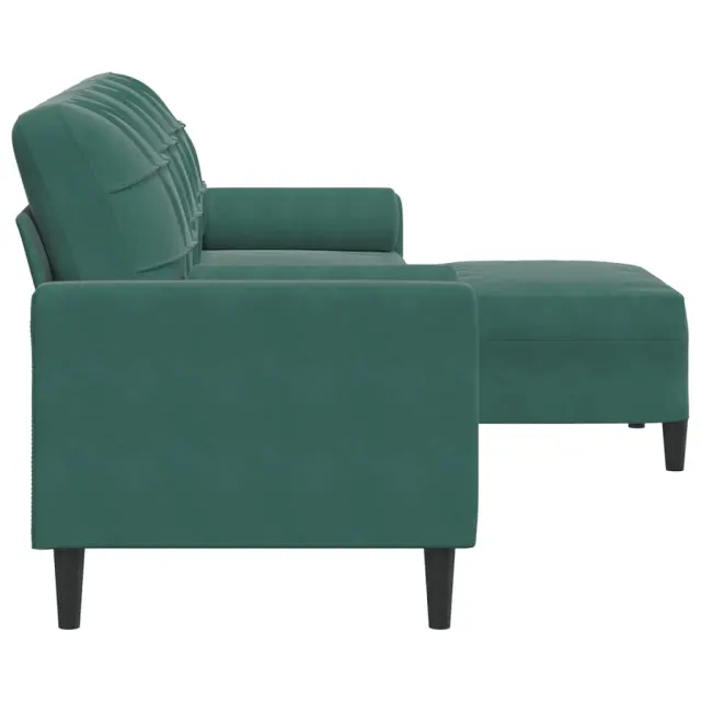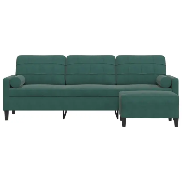 vidaXL Kavč trosed s stolčkom za noge temno zelen 210 cm žamet