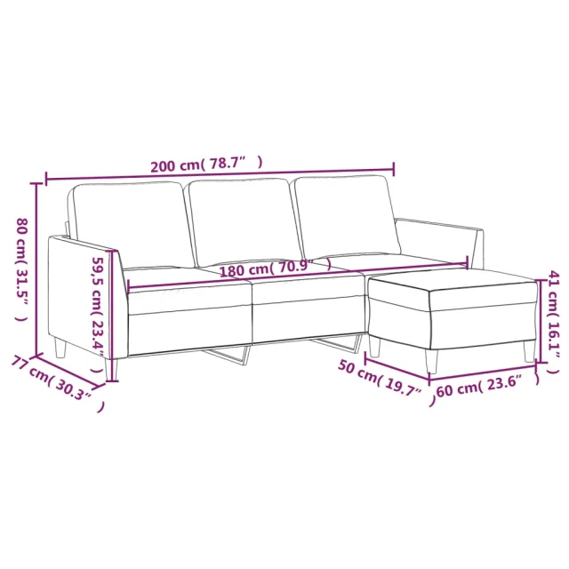 vidaXL Kavč trosed s stolčkom za noge črn 180 cm umetno usnje