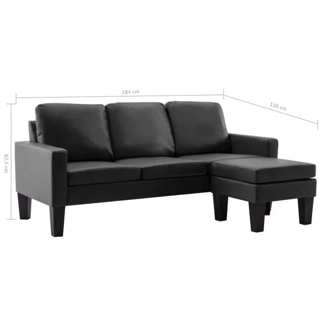 vidaXL Kavč trosed s stolčkom za noge črno umetno usnje