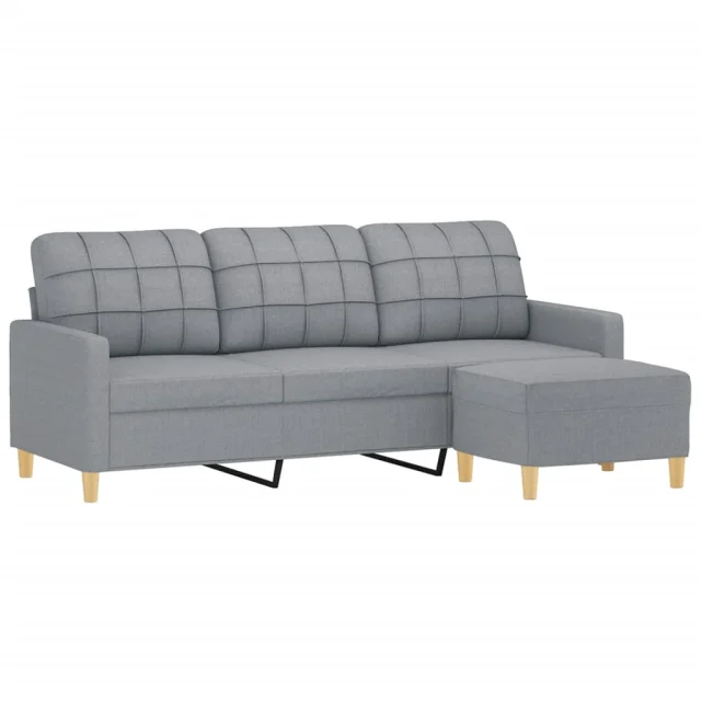 vidaXL Kavč trosed s stolčkom za noge svetlo siv 180 cm blago