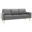 Ta kavč je oblečen v mehko blago, ponaša se z debelo podloženimi blazinami ter nudi udoben prostor za počivanje. Lesen okvir daje oporo in stabilnost celotni konstrukciji.