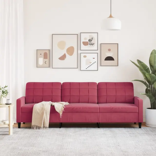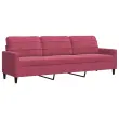 vidaXL Kavč trosed vinsko rdeč 210 cm žamet