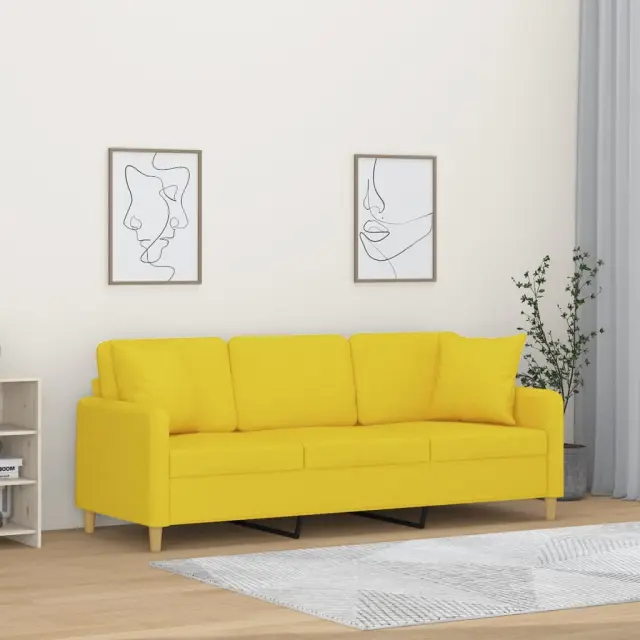 vidaXL Kavč trosed z blazinami svetlo rumen 180 cm blago