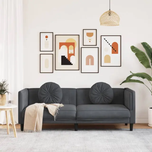vidaXL Kavč trosed z blazinami temno siv žamet