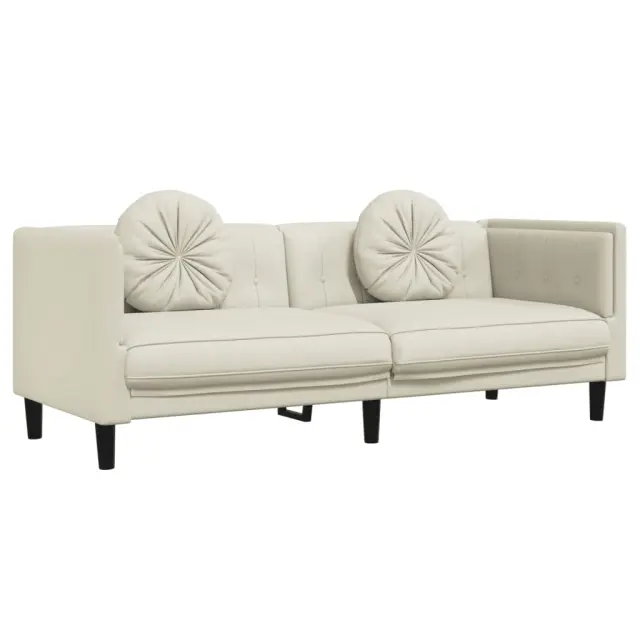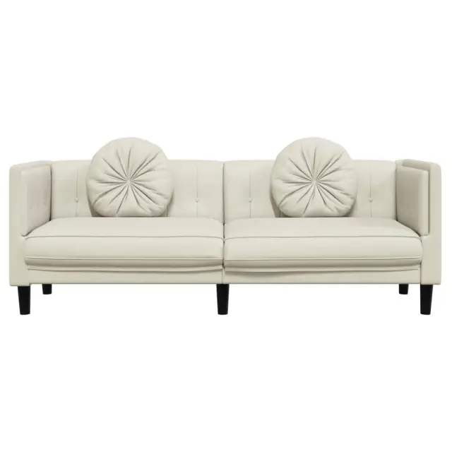 vidaXL Kavč trosed z blazinami krem žamet