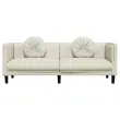 • Udobno sedenje: Kavč je zelo udoben zaradi debelo oblazinjenega sedeža, naslonjal za roke, naslonjala za hrbet in okrogle blazine.
