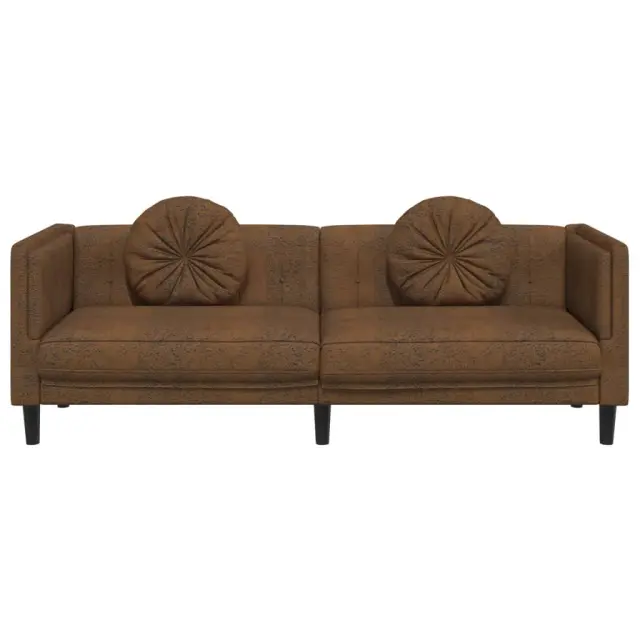 vidaXL Kavč trosed z blazinami rjavi umetno semiš usnje