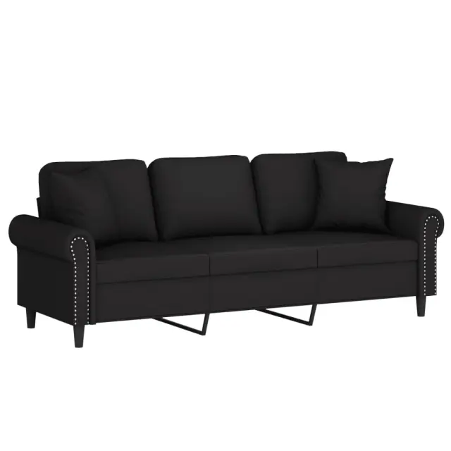 vidaXL Kavč trosed z okrasnimi blazinami črn 180 cm žamet