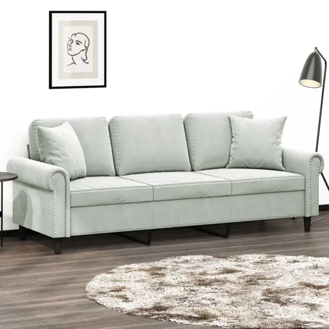 vidaXL Kavč trosed z okrasnimi blazinami svetlo siv 180 cm žamet