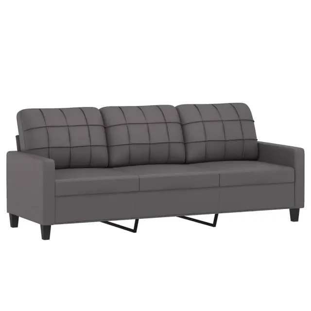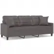 vidaXL Kavč trosed z okrasnimi blazinami siv 180 cm umetno usnje