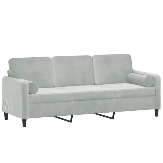 vidaXL Kavč trosed z okrasnimi blazinami svetlo siv 180 cm žamet