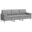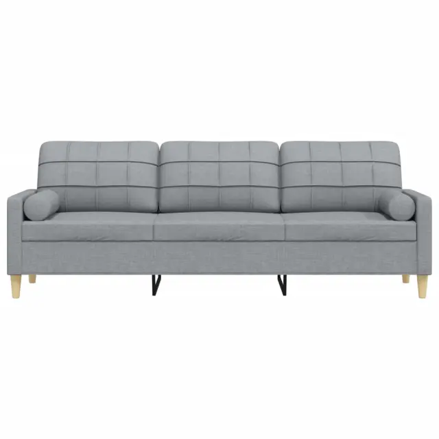 vidaXL Kavč trosed z okrasnimi blazinami svetlo siv 210 cm blago
