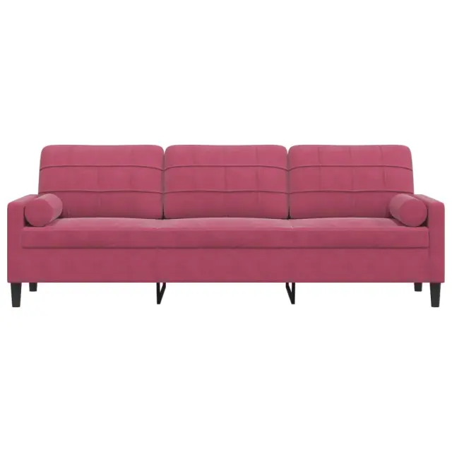 vidaXL Kavč trosed z okrasnimi blazinami vinsko rdeč 210 cm žamet
