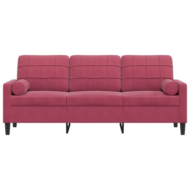 vidaXL Kavč trosed z okrasnimi blazinami vinsko rdeč 180 cm žamet