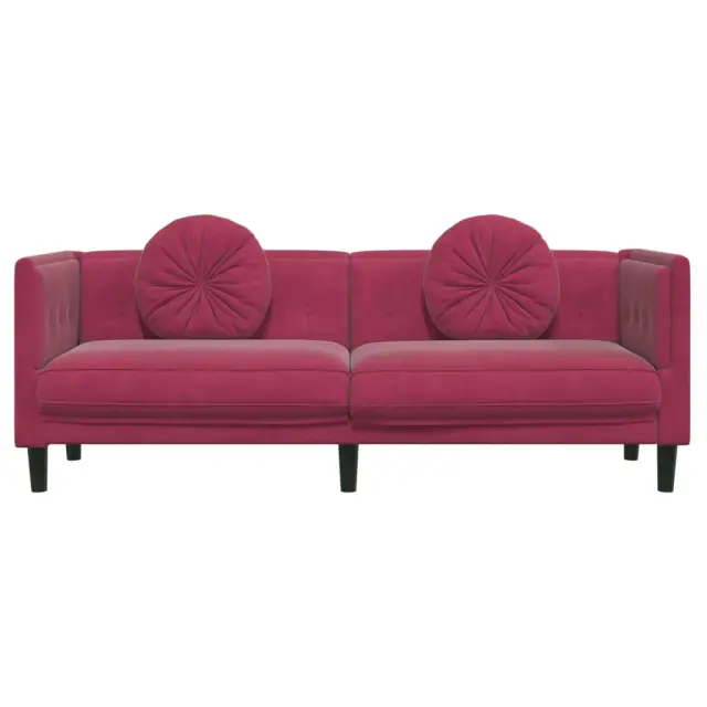 vidaXL Kavč z blazinami trosed vinsko rdeč žamet