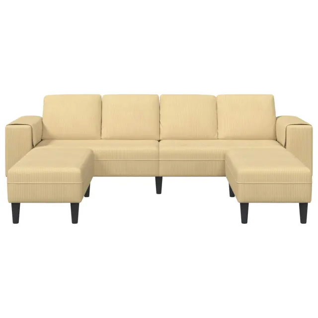 • Materiali: Sedežna garnitura je narejena iz luksuznega in trpežnega korduroja, ki nudi zračno udobje in dolgotrajno trpežnost. Ta tkanina je odporna in omogoča, da uživate pri sedenju brez skrbi, saj še dolgo ostaja del vaše dnevne sobe.