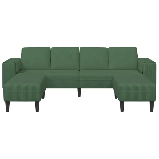 • Materiali: Sedežna garnitura je narejena iz luksuznega in trpežnega korduroja, ki nudi zračno udobje in dolgotrajno trpežnost. Ta tkanina je odporna in omogoča, da uživate pri sedenju brez skrbi, saj še dolgo ostaja del vaše dnevne sobe.