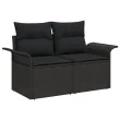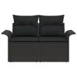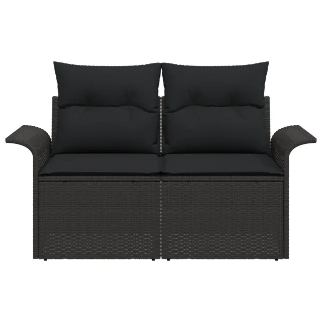 Ta vrtni kavč ponuja stilno rešitev za sedenje, odlično za preživljanje časa zunaj s prijatelji ali družino. Narejen je za zunanje prostore, prepleta sodoben stil z udobno funkcionalnostjo. Vsebuje dva posamezna kavča, oblita v eleganten črn poli ratan, dopolnjena s mehkimi črnimi blazinami.