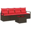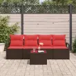 vidaXL Kavčna garnitura 5 pcs Rjava in rdeča poli ratan