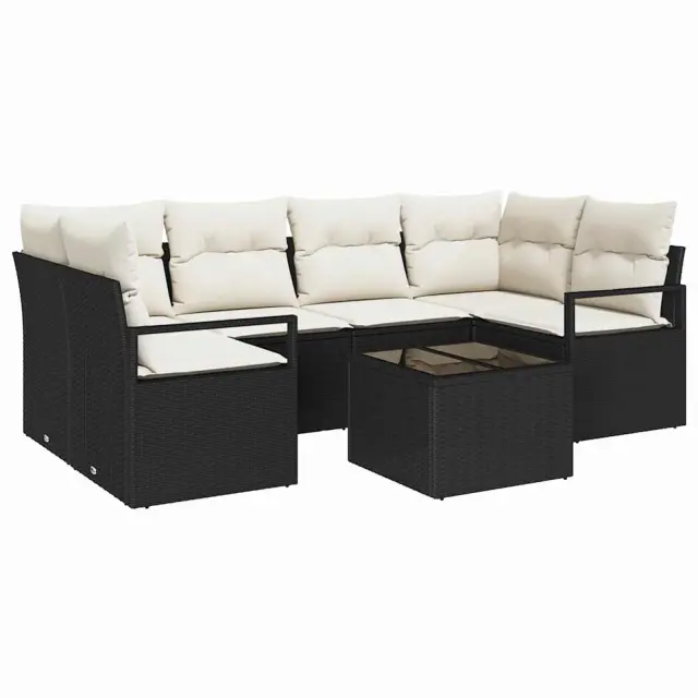 vidaXL Kavčna garnitura 7 pcs Črna in krem poli ratan