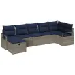 vidaXL Kavčna garnitura 7 pcs Siva in mornarsko modra poli ratan