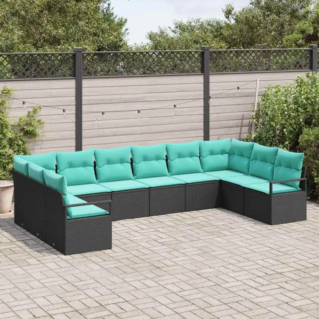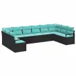 vidaXL Kavčna garnitura z blazino 10 pcs Črna poli ratan