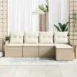 vidaXL Kavčna garnitura z blazino 5 pcs Bež in bela poli ratan