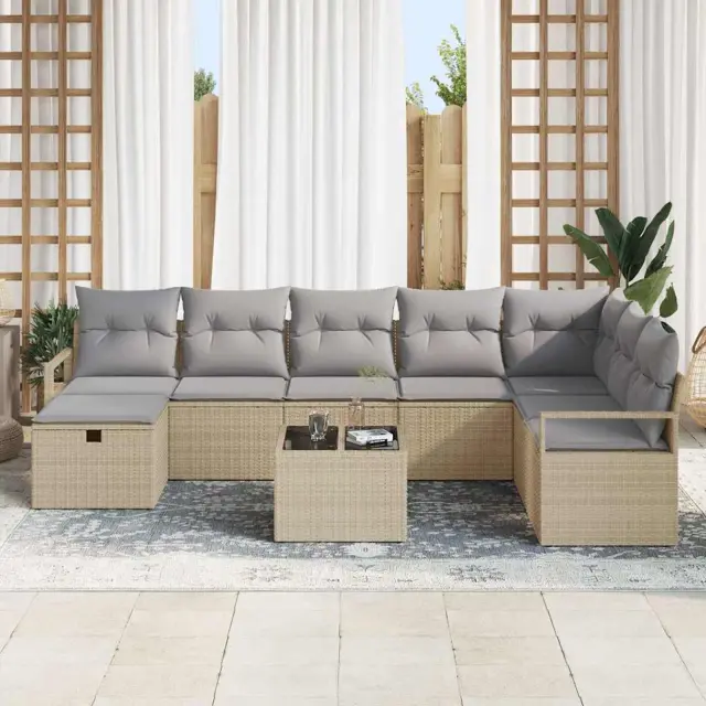 Ta eleganten vrtni kavč s sodobnim dizajnom ponuja odlično kombinacijo stila in funkcionalnosti, idealen za zunanje prostore. Zasnovan za tiste, ki imajo radi preprostost in čiste linije, ta set ponuja udoben prostor za sedenje v vašem vrtu ali terasi. Njegova prepletena tekstura in pravokotna oblika ustvarjata prijetno vzdušje, kar ga dela popolno dopolnilo vaši zunanji dnevni sobi. Ne glede na to, ali imate obisk ali se sproščate sami, ta kavč nudi odlično udobje in kanček razkošja.