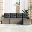 vidaXL Kavčna garnitura z blazino 5 pcs Siva poli ratan