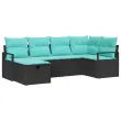 vidaXL Kavčna garnitura z blazino 6 pcs Črna in turkizna poli ratan