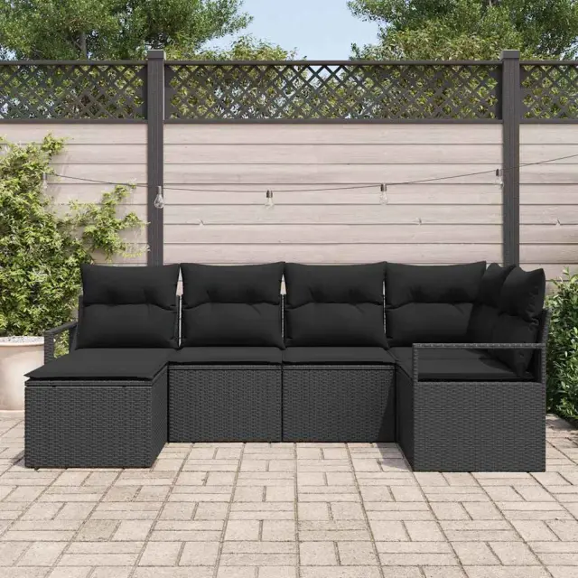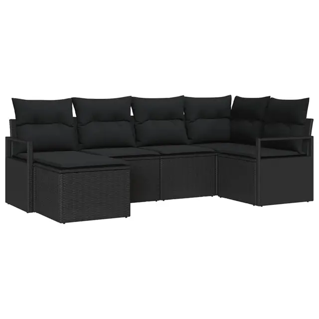 vidaXL Kavčna garnitura z blazino 6 pcs Črna poli ratan