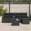 vidaXL Kavčna garnitura z blazino 6 pcs Črna poli ratan
