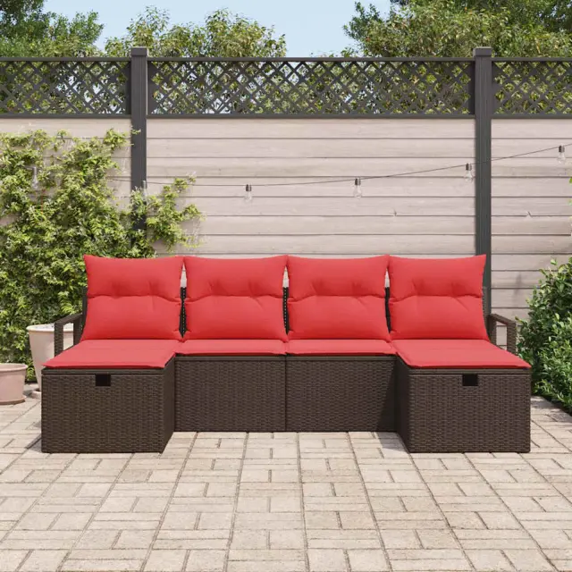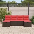 vidaXL Kavčna garnitura z blazino 6 pcs Rjava in rdeča poli ratan